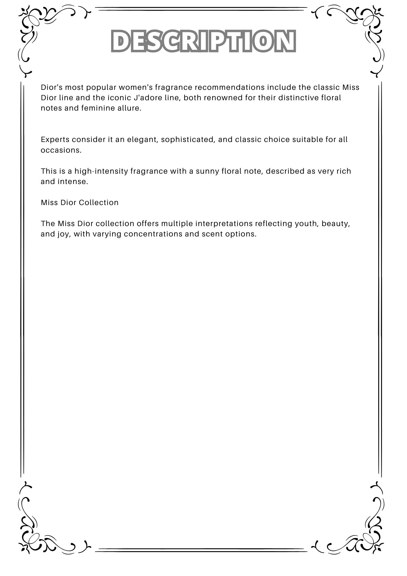 Dior's most popular women's fragrance recommendations include the classic Miss Dior line and the iconic J'adore line, both renowned for their distinctive floral notes and feminine allure.
