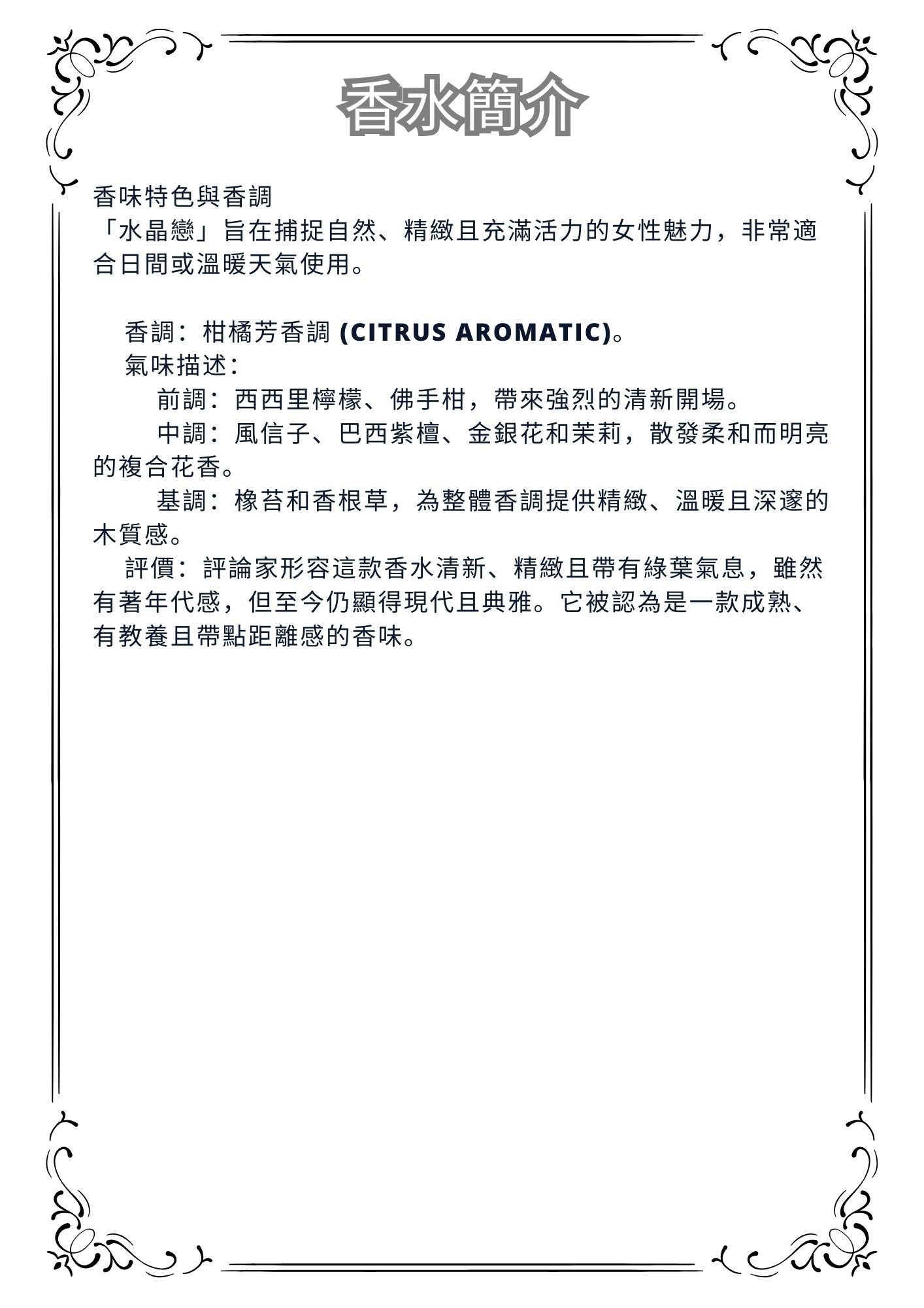Fragrance Characteristics and Notes