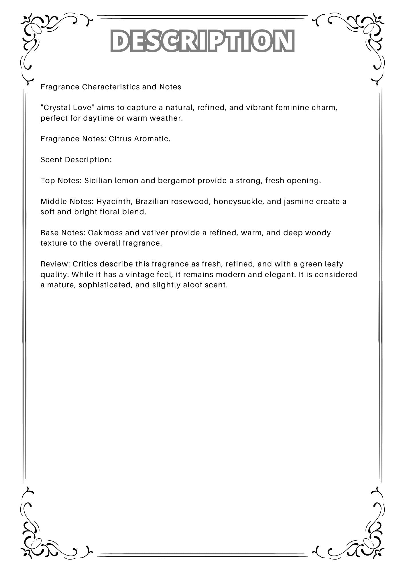 "Crystal Love" aims to capture a natural, refined, and vibrant feminine charm, perfect for daytime or warm weather.