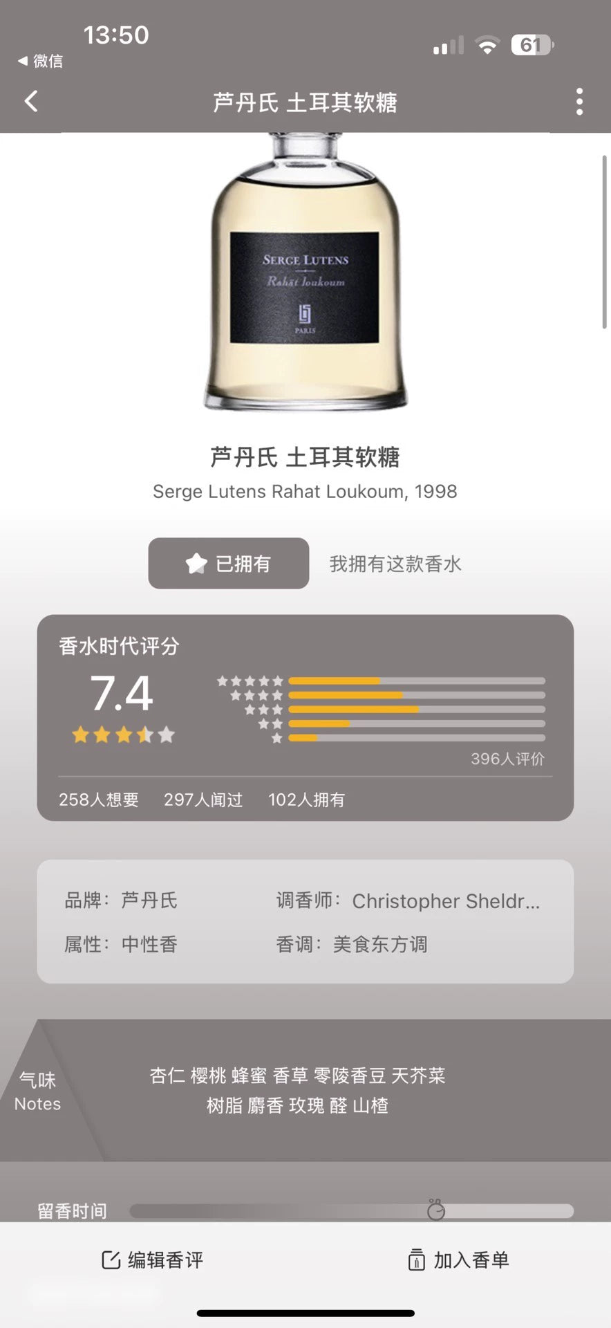 050126-66 Serge Lutens 75ml 2.5 oz eau de parfum EDP